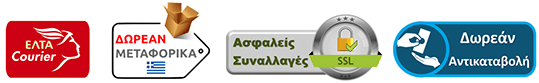 Δωρεάν παράδοση με αντικαταβολή πανελλαδικά, σε 1 εως 2 εργάσιμες μέρες.